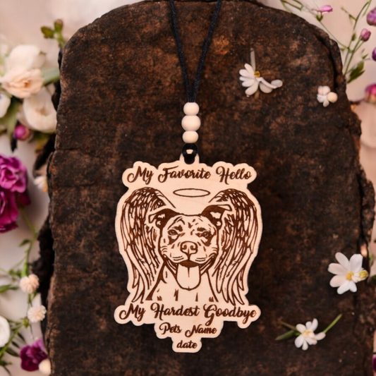 My Favorite Hello - Pitbull Christmas Ornament or Mirror Hanger (Pet-PitBull-001)