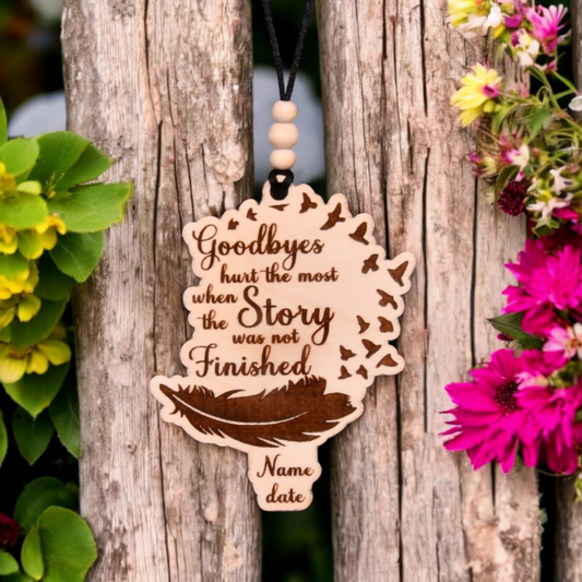 Feather Goodbye Christmas Ornament or Mirror Hanger (Feather-001)