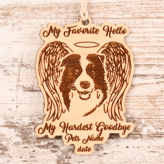 My Favorite Hello - Border Collie Christmas Ornament or Mirror Hanger (Pet-BorderCollie-001)